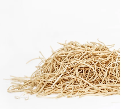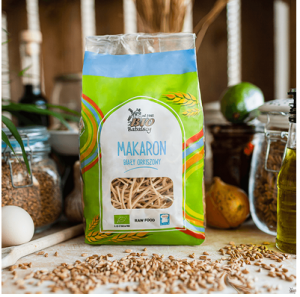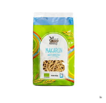 Makaron orkiszowy Biały Nitki produkowany z mąki orkiszowej białej Typ 630, bez dodatku jaj i soli.