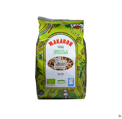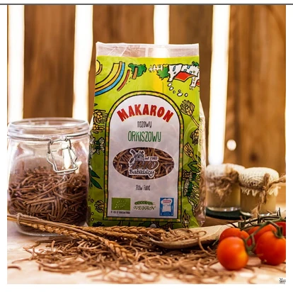 Makaron orkiszowy razowy Nitka produkowany z mąki orkiszowej razowej Typ 1850, bez dodatku jaj i soli, bogaty w błonnik pokarmowy i mikroelementy.