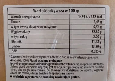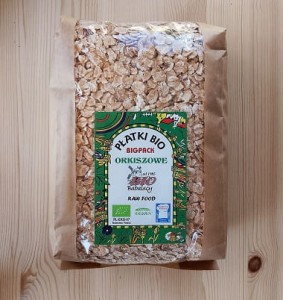 Płatki orkiszowe pełnoziarniste - jest to zgniecione ziarno orkiszu. Dzięki temu produkt zachowuje wszystkie cenne składniki zboża, do których zaliczyć można białko, błonnik pokarmowy, składniki mineralne i witaminy. Orkisz posiada więcej pozytywnie wpływających na nasz organizm składników niż zboża innych odmian, dodatkowo jest lekkostrawny i łatwoprzyswajalny. Płatki orkiszowe - wartości odżywcze w nich zawarte wzmacniają ciało, pozytywnie wpływają na krążenie krwi. Zaleca się ich spożycie przy przemęczeniu, alergiach oraz chorobach wątroby i nerek. Płatki orkiszowe pełnoziarniste zapobiegają też powstawaniu kamieni żółciowych. Dieta oparta na orkiszu pozwala obniżyć poziom cholesterolu we krwi. Producent żywności BioBabalscy do wytworzenia tego produktu używa ziaren orkiszu odmiany Schwabenkorn, polecanej w diecie Świętej Hildegardy.